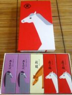 友人からの「銀座あけぼの」の”ニ〇ニ六餅”。年号をかたどったおかきもあり、どれも美味しかったです。『幸せを願う干支人形』のフェーブのような可愛らしい馬の根付が入っていました!